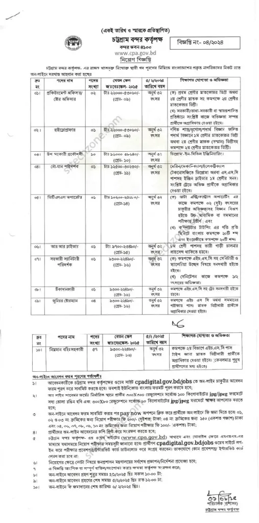 চট্টগ্রাম বন্দর কর্তৃপক্ষ নিয়োগ ২০২৫ পদের বিবরণ ও যোগ্যতা