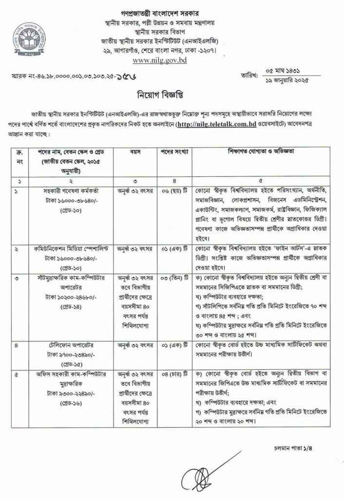 জাতীয় স্থানীয় সরকার ইনস্টিটিউট নিয়োগ 2025