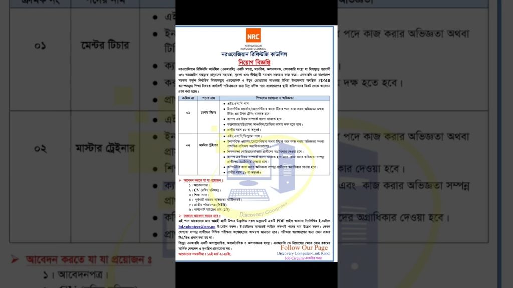 আগ্রহী প্রার্থীদেরকে সময়মতো আবেদন করার জন্য অনুরোধ করা হচ্ছে। নিয়োগ প্রক্রিয়ায় এনআরসি সমান সুযোগের নীতি অনুসরণ করে